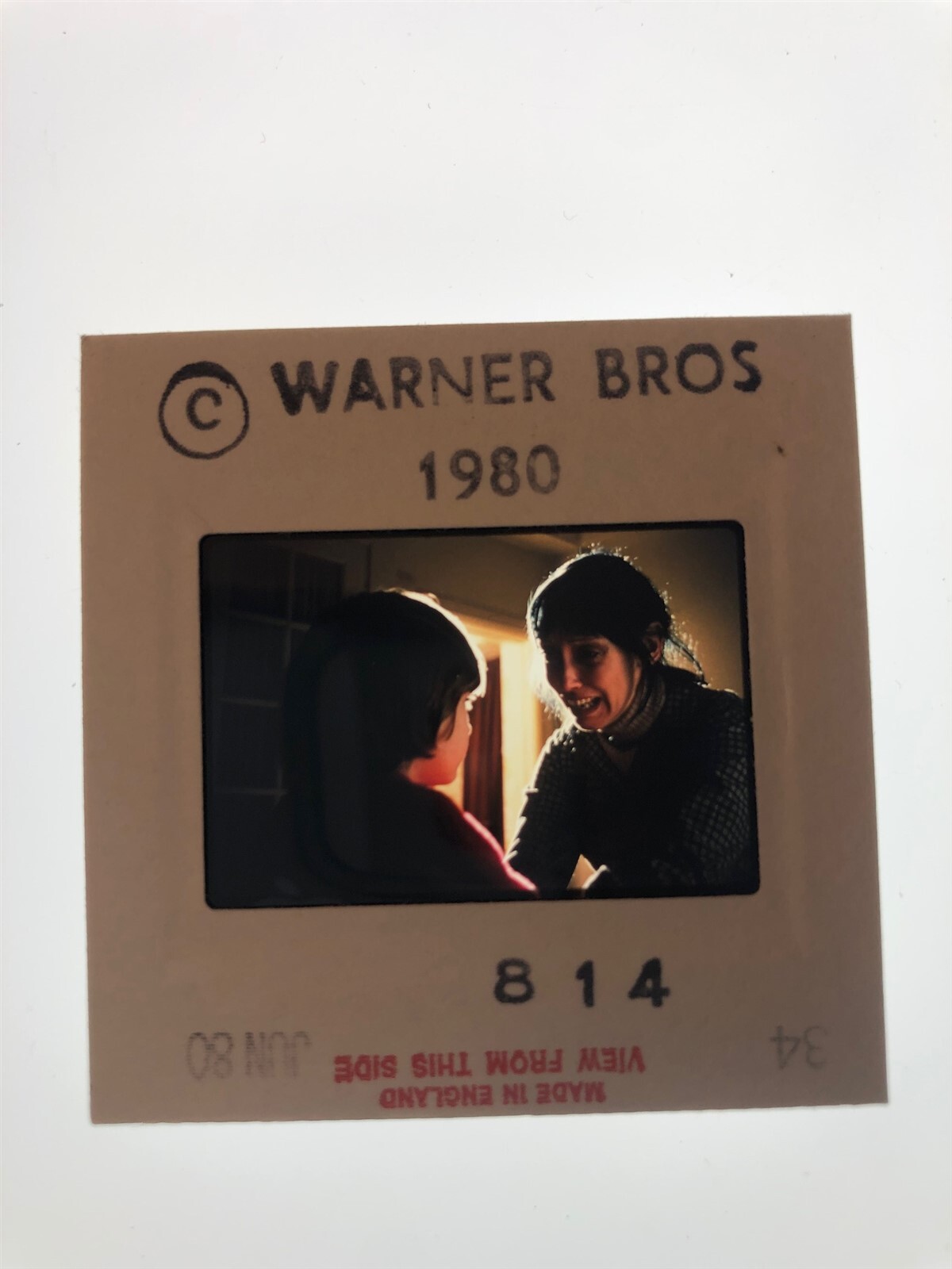 The Shining Shelley Duvall, Danny Lloyd, Stanley Kubrick Original 35mm Transparency Stamped Mount 1980This is an original studio or photographer's 35 mm color slide transparency from our historic archive. This is a real collector's item and would make superb quality photographs or prints. This would also be a great addition to any collection or image archive. This original color slide transparency is in Excellent condition. This collector's item is being sold from one collector to another, no rights are given or implied. Silver Screen Mementos are gradually releasing from their vast archives thousands of original photographs, transparencies, negatives, slides, lobby cards and other movie or television memorabilia.
