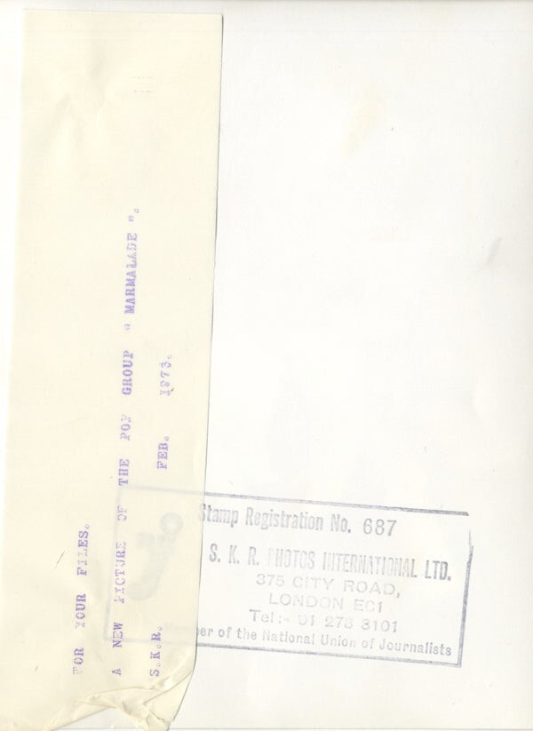 Marmalade Scottish Pop Group Exotic Costumes Original 6x8 approx Photo Stamped with Snipe 1973 VG Condition This is an Original vintage photograph from the year of the concert, photo shoot or event measuring approximately 7x9 inches (18x23cm) unless otherwise stated. Many Original vintage photographs carry the agency or photographer stamp on the back. This is a rare collectors item being offered from one collector to another, no nights given or implied. Silver Screen are gradually releasing thousands of Original Photographs, Transparencies, Negatives, Lobby Cards, Posters, Magazines and other memorabilia from our historic archive.