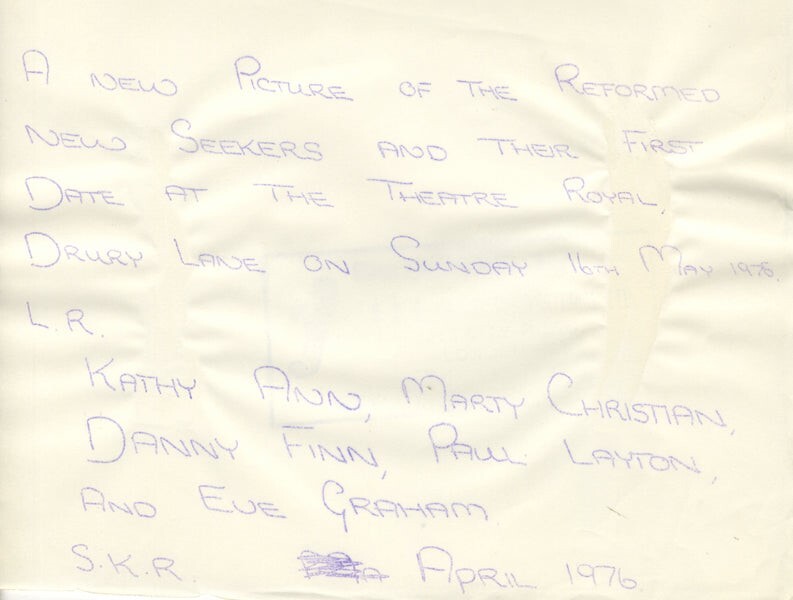 The New Seekers British Pop Band Original 6x8 approx Photo Stamped with Snipe 1976 VG/Near Mint Condition This is an Original vintage photograph from the year of the concert, photo shoot or event measuring approximately 7x9 inches (18x23cm) unless otherwise stated. Many Original vintage photographs carry the agency or photographer stamp on the back. This is a rare collectors item being offered from one collector to another, no nights given or implied. Silver Screen are gradually releasing thousands of Original Photographs, Transparencies, Negatives, Lobby Cards, Posters, Magazines and other memorabilia from our historic archive.