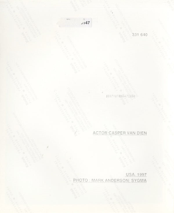 Casper Van Dien Rugged Muscular Portrait Original 8x10 Photo Stamped with Snipe 1997 Near Mint Condition This item is an ORIGINAL 8x10 photo from the historic archives of Silver Screen Mementos. This original photograph was made in the actual year the film, television show or event was produced. The movie studios produced publicity photographs for distribution to the press, photo agencies and publicity departments to advertise the film/tv show or event. Very often original photos have press release information on the reverse of the photo - movie credits, description of the scene, event and people involved. This is a historic piece of cinema art and is being offered from one collector to another, no rights given or implied. Silver Screen are gradually releasing thousands of Original Photographs, Transparencies, Negatives, Lobby Cards, Posters, Magazines and other memorabilia from our historic archive.