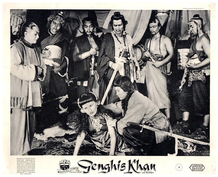 Genghis Khan Original Lobby Card 1950 Manuel Conde Elvira Reyes Inday Jalandoni Jose Villafranca VG Condition Silver Screen Mementos are pleased to be able to offer this authentic original Lobby Card measuring 8x10 inches. This lobby card is from Great Britain and was printed during the actual year the film was released in movie theaters. The lobby card (also known as Front of House/ FOH card in the UK) was created by the film studios to publicize the movie and was intended for display outside the movie theatre in special glass display boxes. These are NOT reproductions! You are looking at a truly original piece of cinema art, a genuine collector's item. We have a huge archive of over 250,000 original lobby cards, mostly from the 1930's to the 1980's. We will be releasing many more rare gems from our vast collection, which will include lobby cards, original photographs, movie stills, magazines, brochures negatives, transparencies, slides and other collectible items of movie memorabilia.