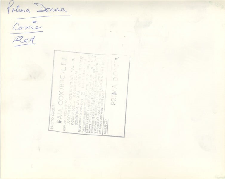 Prima Donna 1980's British Pop Eurovision Song Contest Kate Robbins Band performing on stage stamped Original 8x10 Photo Near Mint Condition This is an Original vintage photograph from the year of the concert, photo shoot or event measuring approximately 8x10 inches (20x25 cm) unless otherwise stated. Many Original vintage photographs carry the agency or photographer stamp on the back. This is a rare collectors item being offered from one collector to another, no nights given or implied. Silver Screen are gradually releasing thousands of Original Photographs, Transparencies, Negatives, Lobby Cards, Posters, Magazines and other memorabilia from our historic archive.