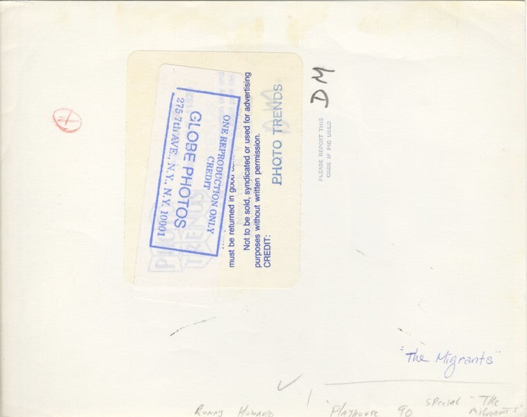 Ron Howard The Migrants 1974 Close up Portrait Original 7x9 Photo Stamped with Snipe VG Condition This item is an ORIGINAL 8x10 photo from the historic archives of Silver Screen Mementos. This original photograph was made in the actual year the film, television show or event was produced. The movie studios produced publicity photographs for distribution to the press, photo agencies and publicity departments to advertise the film/tv show or event. Very often original photos have press release information on the reverse of the photo - movie credits, description of the scene, event and people involved. This is a historic piece of cinema art and is being offered from one collector to another, no rights given or implied. Silver Screen are gradually releasing thousands of Original Photographs, Transparencies, Negatives, Lobby Cards, Posters, Magazines and other memorabilia from our historic archive.