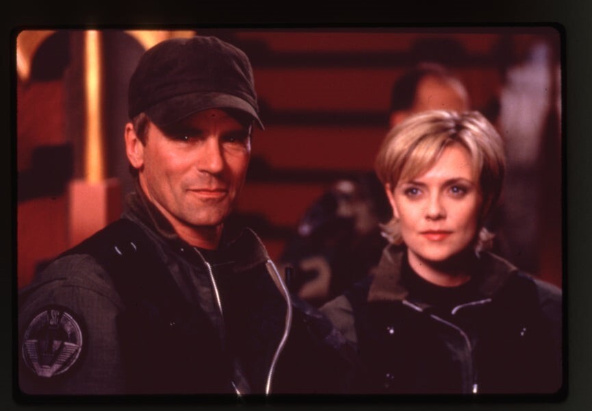 Stargate SG-1 Richard Dean Anderson, Christopher Judge, Michael Shanks, Amanda Tapping TV Sci Fi Original 35mm Transparency This is an original studio or photographer's 35 mm color slide transparency from our historic archive. This is a real collector's item and would make superb quality photographs or prints. This would also be a great addition to any collection or image archive. This original color slide transparency is in Excellent condition. This collector's item is being sold from one collector to another, no rights are given or implied. Silver Screen Mementos are gradually releasing from their vast archives thousands of original photographs, transparencies, negatives, slides, lobby cards and other movie or television memorabilia.