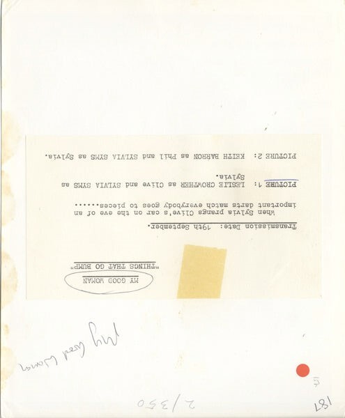 My Good Woman TV Comedy Sylvia Syms Leslie Crowther Original 8x10 Photo w snipe - Near Mint This item is an ORIGINAL 8x10 photo from the historic archives of Silver Screen Mementos. This original photograph was made in the actual year the film, television show or event was produced. The movie studios produced publicity photographs for distribution to the press, photo agencies and publicity departments to advertise the film/tv show or event. Very often original photos have press release information on the reverse of the photo - movie credits, description of the scene, event and people involved. This is a historic piece of cinema art and is being offered from one collector to another, no rights given or implied. Silver Screen are gradually releasing thousands of Original Photographs, Transparencies, Negatives, Lobby Cards, Posters, Magazines and other memorabilia from our historic archive.