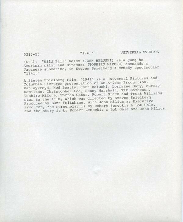 1941 Toshiro Mifune John Belushi pilot saluting Mitamura Original 8x10 Photo Snipe 1979 VG/Near Mint Condition This item is an ORIGINAL 8x10 photo from the historic archives of Silver Screen Mementos. This original photograph was made in the actual year the film, television show or event was produced. The movie studios produced publicity photographs for distribution to the press, photo agencies and publicity departments to advertise the film/tv show or event. Very often original photos have press release information on the reverse of the photo - movie credits, description of the scene, event and people involved. This is a historic piece of cinema art and is being offered from one collector to another, no rights given or implied. Silver Screen are gradually releasing thousands of Original Photographs, Transparencies, Negatives, Lobby Cards, Posters, Magazines and other memorabilia from our historic archive.
