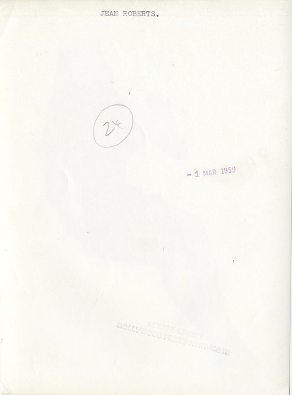 Jean Roberts Busty Leggy Corset Pin up Glamour Original 7x9 approx Photo Stamped Snipe 1959 VG Condition This item is an ORIGINAL 8x10 photo from the historic archives of Silver Screen Mementos. This original photograph was made in the actual year the film, television show or event was produced. The movie studios produced publicity photographs for distribution to the press, photo agencies and publicity departments to advertise the film/tv show or event. Very often original photos have press release information on the reverse of the photo - movie credits, description of the scene, event and people involved. This is a historic piece of cinema art and is being offered from one collector to another, no rights given or implied. Silver Screen are gradually releasing thousands of Original Photographs, Transparencies, Negatives, Lobby Cards, Posters, Magazines and other memorabilia from our historic archive.