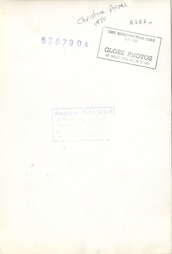 Christine Aurel 1970 Striking Outdoor Glamour Portrait Original 7x10 approx Photo Stamped VG/Near Mint Condition This item is an ORIGINAL 8x10 photo from the historic archives of Silver Screen Mementos. This original photograph was made in the actual year the film, television show or event was produced. The movie studios produced publicity photographs for distribution to the press, photo agencies and publicity departments to advertise the film/tv show or event. Very often original photos have press release information on the reverse of the photo - movie credits, description of the scene, event and people involved. This is a historic piece of cinema art and is being offered from one collector to another, no rights given or implied. Silver Screen are gradually releasing thousands of Original Photographs, Transparencies, Negatives, Lobby Cards, Posters, Magazines and other memorabilia from our historic archive.