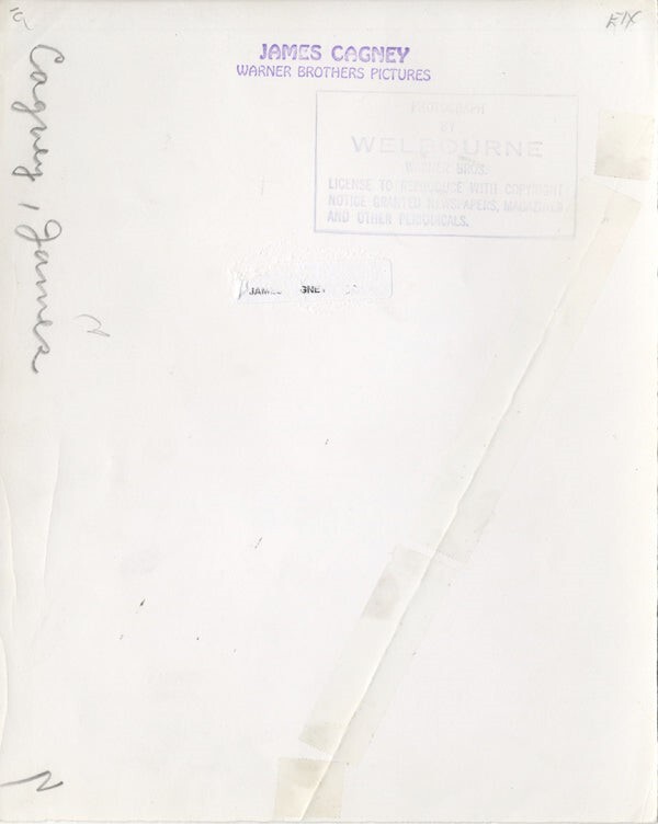 James Cagney 1930's Hollywood Icon Studio Portrait Original 7x9 approx Photo Stamped by famed photographer Scotty Welbourne Good Condition (diagonal crease, wear to edges) This item is an ORIGINAL 8x10 photo from the historic archives of Silver Screen Mementos. This original photograph was made in the actual year the film, television show or event was produced. The movie studios produced publicity photographs for distribution to the press, photo agencies and publicity departments to advertise the film/tv show or event. Very often original photos have press release information on the reverse of the photo - movie credits, description of the scene, event and people involved. This is a historic piece of cinema art and is being offered from one collector to another, no rights given or implied. Silver Screen are gradually releasing thousands of Original Photographs, Transparencies, Negatives, Lobby Cards, Posters, Magazines and other memorabilia from our historic archive.