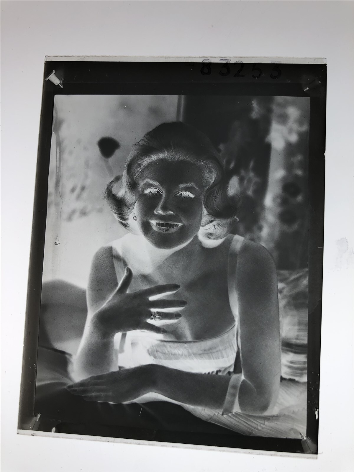 Doris Day 1963 Smiling Glamour Photo Shoot Original 4x5 Glass Plate Negative This is a very rare original 4x5 inch black and white glass plate negative from our historic archive. Photographic Reproduction: Glass plate negatives were used for capturing high-quality images for printing. Newspapers and magazines relied on photographs to accompany stories, and these negatives were often used to create prints for publication. The images captured on glass plates were transferred to printing plates via processes like photoengraving, which involved creating an etched surface that would transfer the image onto paper during the printing process. Durability and Resolution: Glass plates provided a high degree of image resolution and were more durable than early photographic films, especially in terms of retaining sharp detail. This was important for newspapers aiming to print clear and detailed images, particularly for things like portraits, action shots, and other photographs that needed to convey complex visual information. Negative Creation: The glass plate negatives served as master negatives from which multiple prints could be made. These prints were then used to create plates for the newspaper and magazine printing presses. Since a single glass negative could be used to produce many prints, it was an efficient means of reproduction for wide distribution. Archival Storage: Glass plate negatives were relatively stable and durable over time, making them useful for archival purposes. Newspapers and magazine publications would often keep them in storage for future use or reference, and some photographic archives from newspapers still hold collections of glass plates from this era. This is a real collector's item and would make superb quality photographs or prints. This would also be a great addition to any collection or image archive. This vintage negative glass negative is in Excellent condition. This collector's item is being sold from one collector to another, no rights are given or implied. Silver Screen Archives are gradually releasing from their vast archives thousands of original photographs, transparencies, negatives, slides, lobby cards and other movie or television memorabilia.
