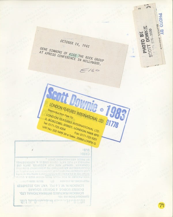 KISS Gene Simmons bare-chest outfit with chains Stamped Original 8x10 Photo 1982 - great image, very rare in VG/Near Mint Condition This item is an ORIGINAL 8x10 photo from the historic archives of Silver Screen Mementos. This original photograph was made in the actual year the film, television show or event was produced. The movie studios produced publicity photographs for distribution to the press, photo agencies and publicity departments to advertise the film/tv show or event. Very often original photos have press release information on the reverse of the photo - movie credits, description of the scene, event and people involved. This is a historic piece of cinema art and is being offered from one collector to another, no rights given or implied. Silver Screen are gradually releasing thousands of Original Photographs, Transparencies, Negatives, Lobby Cards, Posters, Magazines and other memorabilia from our historic archive.