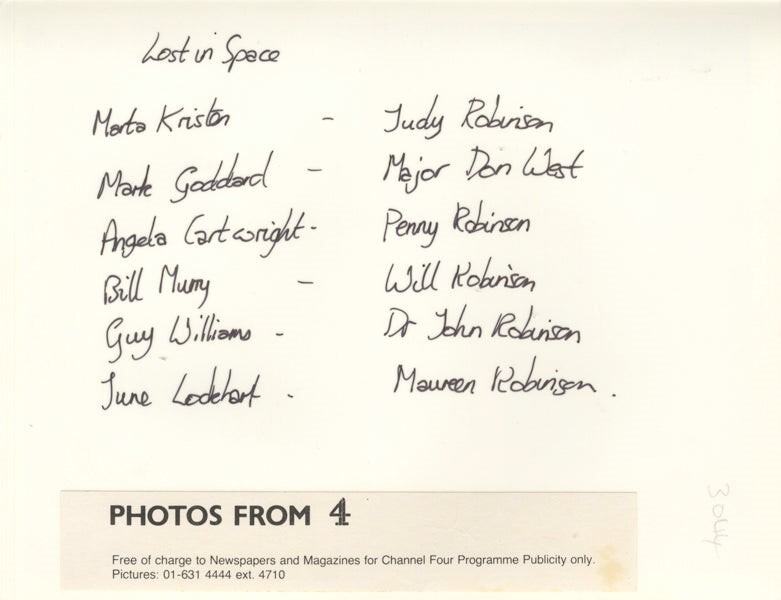 Lost in Space 1960's TV Sci Fi Marta Kristen, Billy Mumy, Angela Cartwright, Mark Goddard, Guy Williams, June Lockhart Robinson Family Cast near chess set Vintage 6x8 approx Photo with Snipe Near Mint Condition This item is an ORIGINAL 8x10 photo from the historic archives of Silver Screen Mementos. This original photograph was made in the actual year the film, television show or event was produced. The movie studios produced publicity photographs for distribution to the press, photo agencies and publicity departments to advertise the film/tv show or event. Very often original photos have press release information on the reverse of the photo - movie credits, description of the scene, event and people involved. This is a historic piece of cinema art and is being offered from one collector to another, no rights given or implied. Silver Screen are gradually releasing thousands of Original Photographs, Transparencies, Negatives, Lobby Cards, Posters, Magazines and other memorabilia from our historic archive.