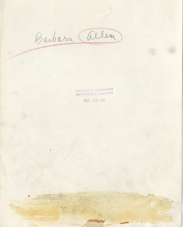 Barbara Allen Vera Vague era Glamour Portrait Original 8x10 Photo Stamped 1940 VG Condition This item is an ORIGINAL 8x10 photo from the historic archives of Silver Screen Mementos. This original photograph was made in the actual year the film, television show or event was produced. The movie studios produced publicity photographs for distribution to the press, photo agencies and publicity departments to advertise the film/tv show or event. Very often original photos have press release information on the reverse of the photo - movie credits, description of the scene, event and people involved. This is a historic piece of cinema art and is being offered from one collector to another, no rights given or implied. Silver Screen are gradually releasing thousands of Original Photographs, Transparencies, Negatives, Lobby Cards, Posters, Magazines and other memorabilia from our historic archive.