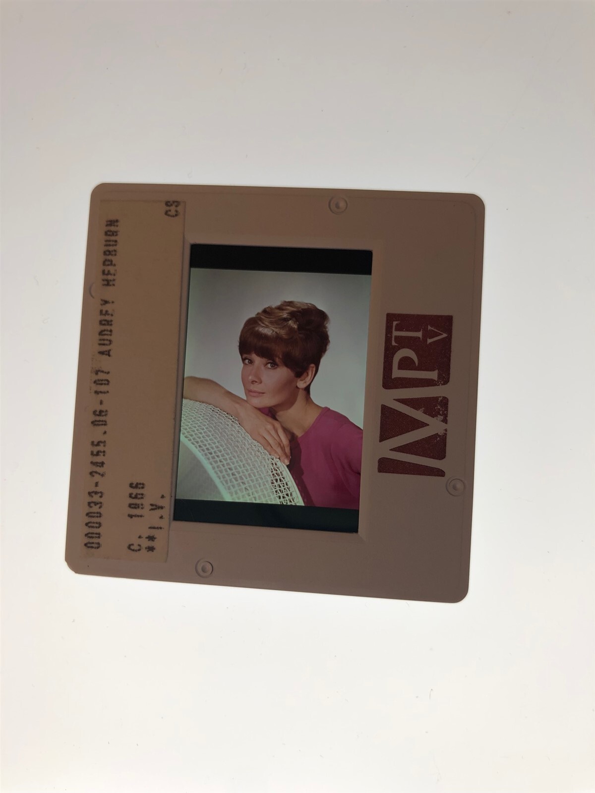 Audrey Hepburn 1966 Pink Fashion Glamour Vintage Photo Agency 35mm Transparency Stamped Mount This is a vintage photo Agency duplicate 35mm color transparency, derived directly from the original camera transparency, so ensuring sharp detail and vivid color. The photo Agencies produced very few duplicates, which were sent out to magazines and publications for publishing. This is a real collector's item and would make superb quality photographs or prints. This would also be a great addition to any collection or image archive. This color transparency is in Excellent condition. This collector's item is being sold from one collector to another, no rights are given or implied. Silver Screen Mementos are gradually releasing from their vast archives thousands of original photographs, transparencies, negatives, slides, lobby cards and other movie or television memorabilia.