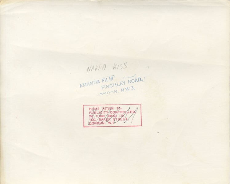 The Naked Kiss 1964 Constance Towers, Shirtless Michael Dante Film Noir Original 8x10 Photo Stamped Good/VG Condition (creasing at corners, horizontal & diagonal creases across front) This item is an ORIGINAL 8x10 photo from the historic archives of Silver Screen Mementos. This original photograph was made in the actual year the film, television show or event was produced. The movie studios produced publicity photographs for distribution to the press, photo agencies and publicity departments to advertise the film/tv show or event. Very often original photos have press release information on the reverse of the photo - movie credits, description of the scene, event and people involved. This is a historic piece of cinema art and is being offered from one collector to another, no rights given or implied. Silver Screen are gradually releasing thousands of Original Photographs, Transparencies, Negatives, Lobby Cards, Posters, Magazines and other memorabilia from our historic archive.