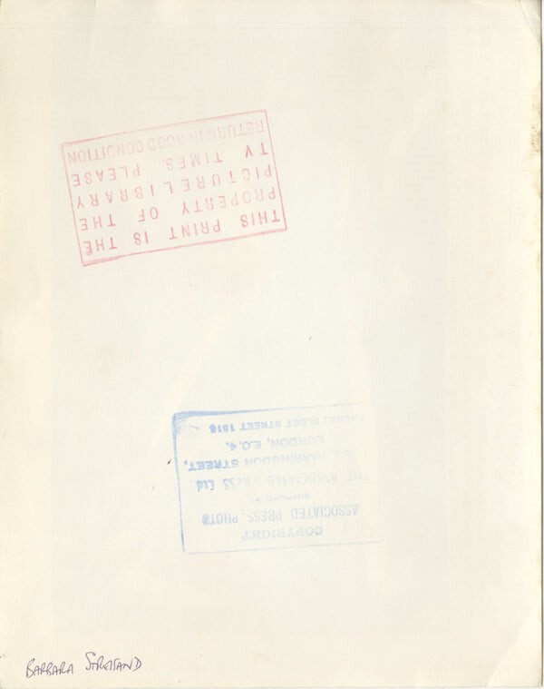 Funny Girl 1969 Premiere Barbra Streisand, Omar Sharif, Maurice Chevalier Vintage Press 8x10 Photo Stamped with Snipe VG Condition This item is an ORIGINAL 8x10 photo from the historic archives of Silver Screen Mementos. This original photograph was made in the actual year the film, television show or event was produced. The movie studios produced publicity photographs for distribution to the press, photo agencies and publicity departments to advertise the film/tv show or event. Very often original photos have press release information on the reverse of the photo - movie credits, description of the scene, event and people involved. This is a historic piece of cinema art and is being offered from one collector to another, no rights given or implied. Silver Screen are gradually releasing thousands of Original Photographs, Transparencies, Negatives, Lobby Cards, Posters, Magazines and other memorabilia from our historic archive.