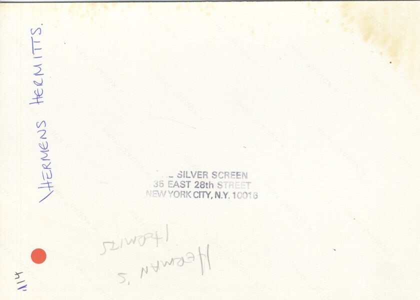 Herman's Hermits Peter Noone and guitarist performing on stage Original 6x9 approx Color Photo Stamped VG/Near Mint Condition This item is an ORIGINAL 8x10 photo from the historic archives of Silver Screen Mementos. This original photograph was made in the actual year the film, television show or event was produced. The movie studios produced publicity photographs for distribution to the press, photo agencies and publicity departments to advertise the film/tv show or event. Very often original photos have press release information on the reverse of the photo - movie credits, description of the scene, event and people involved. This is a historic piece of cinema art and is being offered from one collector to another, no rights given or implied. Silver Screen are gradually releasing thousands of Original Photographs, Transparencies, Negatives, Lobby Cards, Posters, Magazines and other memorabilia from our historic archive.