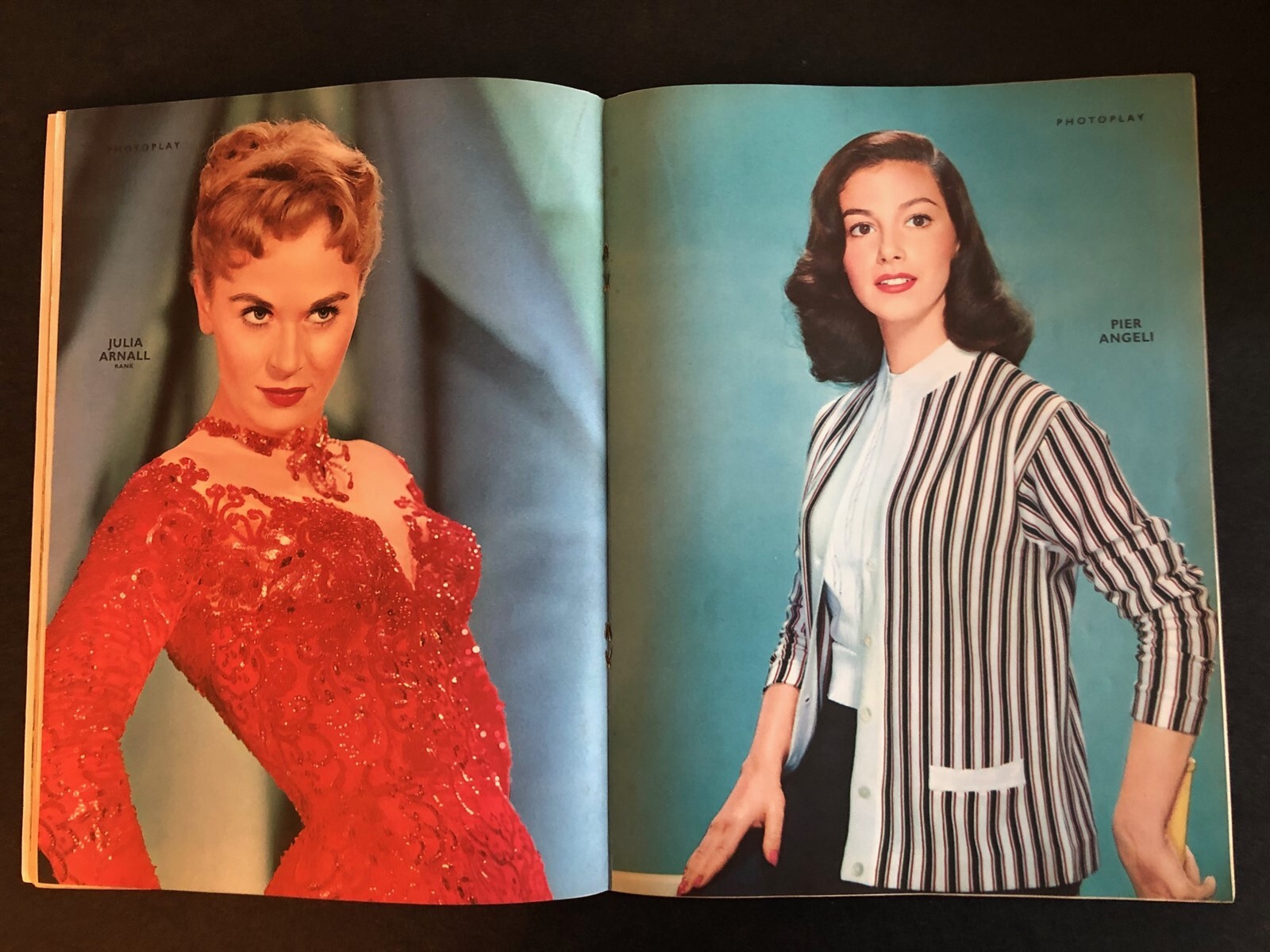 Photoplay Movie Magazine Elsa Martinelli Cover Photo Pier Angeli ,Julia Arnall, Diana Dors, Charlton Heston, Keith Michel etc March 1957 This is the complete issue of the Photoplay film magazine containing color and b/w pictures, articles, interviews, reviews, advertisments and features. This vintage original magazine measures approximately 8.5 x 11 inches. Silver Screen Mementos are gradually releasing from their vast archives thousands of original photographs, transparencies, negatives, slides, lobby cards, magazines, brochures, press books and other movie or television memorabilia