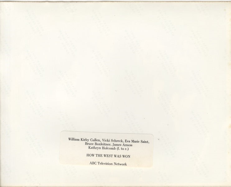How the West Was Won Eva Marie Saint, Bruce Boxleitner, James Arness, William Kirby Cullen, Vicki Schreck, Kathryn Holcomb Cast Original 8x10 Color Photo with ABC Snipe Near Mint Condition This item is an ORIGINAL 8x10 photo from the historic archives of Silver Screen Mementos. This original photograph was made in the actual year the film, television show or event was produced. The movie studios produced publicity photographs for distribution to the press, photo agencies and publicity departments to advertise the film/tv show or event. Very often original photos have press release information on the reverse of the photo - movie credits, description of the scene, event and people involved. This is a historic piece of cinema art and is being offered from one collector to another, no rights given or implied. Silver Screen are gradually releasing thousands of Original Photographs, Transparencies, Negatives, Lobby Cards, Posters, Magazines and other memorabilia from our historic archive.