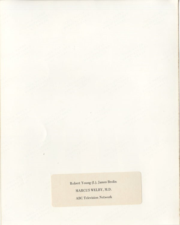 Marcus Welby MD Robert Young, James Brolin Original 8x10 Color Photo with ABC Snipe Near Mint Condition This item is an ORIGINAL 8x10 photo from the historic archives of Silver Screen Mementos. This original photograph was made in the actual year the film, television show or event was produced. The movie studios produced publicity photographs for distribution to the press, photo agencies and publicity departments to advertise the film/tv show or event. Very often original photos have press release information on the reverse of the photo - movie credits, description of the scene, event and people involved. This is a historic piece of cinema art and is being offered from one collector to another, no rights given or implied. Silver Screen are gradually releasing thousands of Original Photographs, Transparencies, Negatives, Lobby Cards, Posters, Magazines and other memorabilia from our historic archive.