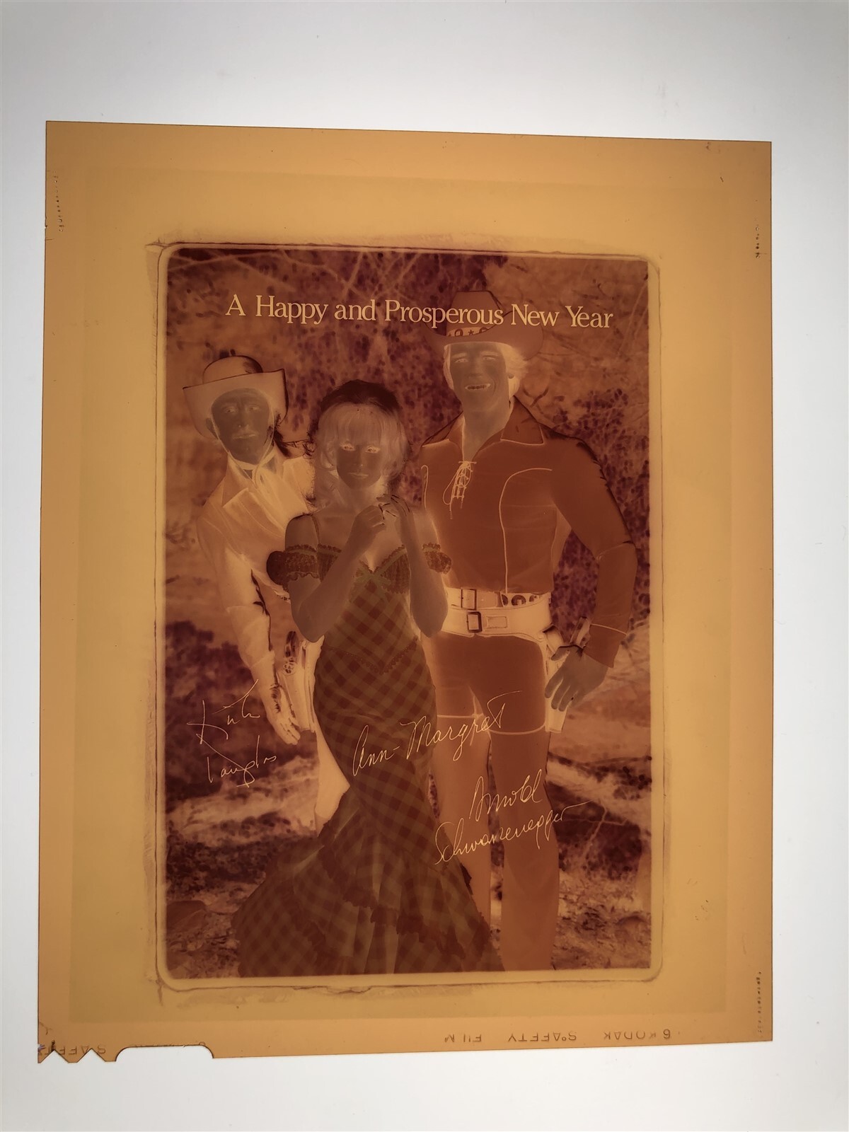 Captus Jack AKA The Villain 1979 Ann-Margret Arnold Schwarzenegger Kirk Douglas Vintage 5x4 negativeThis is a vintage studio or photographers color 4x5 inch negative. This is a real collector's item and would make superb quality photographs or prints. This would also be a great addition to any collection or image archive. This color photographic negative is in Excellent condition. This collector's item is being sold from one collector to another, no rights are given or implied. Silver Screen Mementos are gradually releasing from their vast archives thousands of original photographs, transparencies, negatives, slides, lobby cards and other movie or television memorabilia.