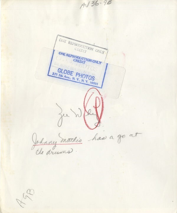 Johnny Mathis playing drums rare Vintage C 1960's Original 8x10 Photo - Good/VG Condition This is an Original vintage photograph from the year of the concert, photo shoot or event measuring approximately 8x10 inches (20x25 cm) unless otherwise stated. Many Original vintage photographs carry the agency or photographer stamp on the back. This is a rare collectors item being offered from one collector to another, no nights given or implied. Silver Screen are gradually releasing thousands of Original Photographs, Transparencies, Negatives, Lobby Cards, Posters, Magazines and other memorabilia from our historic archive.