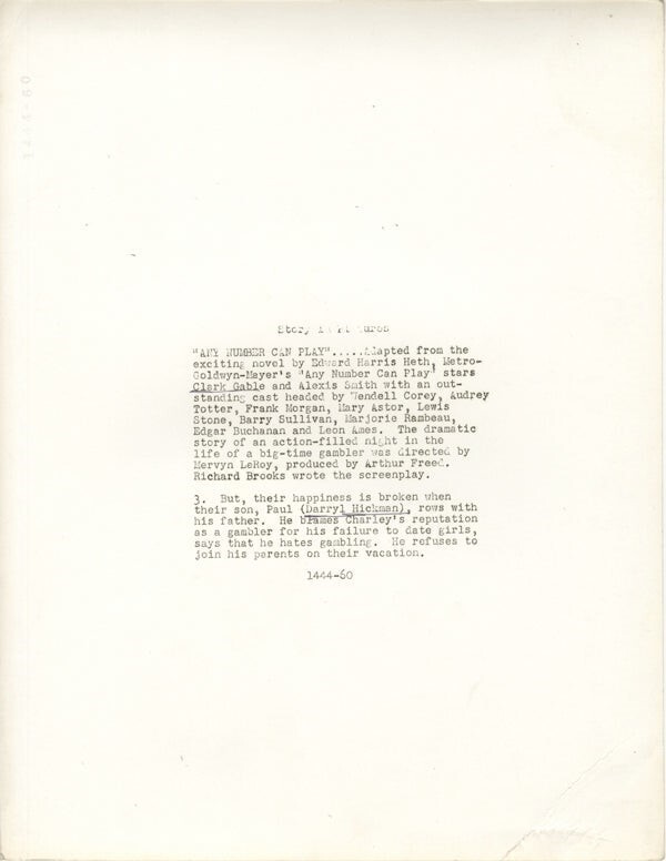 Any Number Can Play 1949 Clark Gable Darryl Hickman Original Double Weight 10x12 Silver Gelatin Photo with snipe on back VG/Near Mint This item is a Vintage Original Oversized Silver Gelatin photograph from the historic archives of Silver Screen Mementos. We have a huge collection of original vintage oversized photographs that were produced by the photographer or photo agency with most having the photographer/agency stamp on the back and many with snipe detailing information about the shoot or subject. These are extremely rare collectors items and will be shipped securely in protective archival top loader holder and strong packaging to ensure safe delivery. This is a historic piece of photographic art and is being offered from one collector to another, no rights given or implied. Silver Screen are gradually releasing thousands of Original Photographs, Transparencies, Negatives, Lobby Cards, Posters, Magazines and other memorabilia from our historic archive.