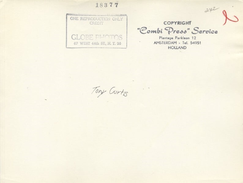 Tony Curtis 1950's at home pouring VAT 69 Whiskey Original 7x9 approx Photo Stamped VG/Near Mint Condition This item is an ORIGINAL 8x10 photo from the historic archives of Silver Screen Mementos. This original photograph was made in the actual year the film, television show or event was produced. The movie studios produced publicity photographs for distribution to the press, photo agencies and publicity departments to advertise the film/tv show or event. Very often original photos have press release information on the reverse of the photo - movie credits, description of the scene, event and people involved. This is a historic piece of cinema art and is being offered from one collector to another, no rights given or implied. Silver Screen are gradually releasing thousands of Original Photographs, Transparencies, Negatives, Lobby Cards, Posters, Magazines and other memorabilia from our historic archive.