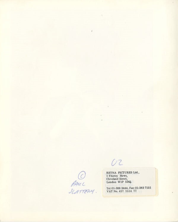 U2 Bono Iconic early 1980 Portrait Vintage Original Stamped 8x10 Photo - Very rare early photo shoot by Paul Slattery of Bono from the Irish Rock Band 'U2' - Near Mint Condition This is an Original vintage photograph from the year of the concert, photo shoot or event measuring approximately 8x10 inches (20x25 cm) unless otherwise stated. Many Original vintage photographs carry the agency or photographer stamp on the back. This is a rare collectors item being offered from one collector to another, no nights given or implied. Silver Screen are gradually releasing thousands of Original Photographs, Transparencies, Negatives, Lobby Cards, Posters, Magazines and other memorabilia from our historic archive.