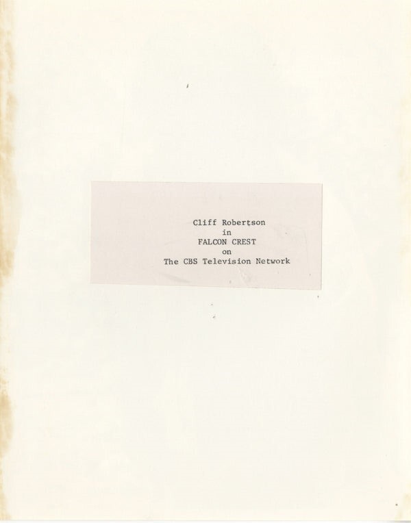 Cliff Robertson Falcon Crest 1980's TV Series Publicity Portrait Original 7x9 Photo with Snipe Near Mint Condition This item is an ORIGINAL 8x10 photo from the historic archives of Silver Screen Mementos. This original photograph was made in the actual year the film, television show or event was produced. The movie studios produced publicity photographs for distribution to the press, photo agencies and publicity departments to advertise the film/tv show or event. Very often original photos have press release information on the reverse of the photo - movie credits, description of the scene, event and people involved. This is a historic piece of cinema art and is being offered from one collector to another, no rights given or implied. Silver Screen are gradually releasing thousands of Original Photographs, Transparencies, Negatives, Lobby Cards, Posters, Magazines and other memorabilia from our historic archive.