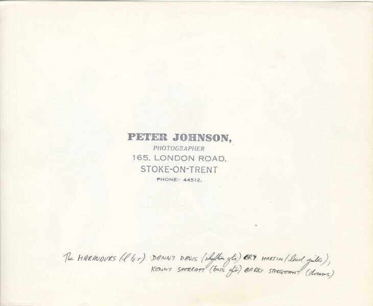 The Marauders 1960's English Popstar Skiffle Group Original 8x10 Photo Stamped VG/Near Mint Condition This is an Original vintage photograph from the year of the concert, photo shoot or event measuring approximately 8x10 inches (20x25 cm) unless otherwise stated. Many Original vintage photographs carry the agency or photographer stamp on the back. This is a rare collectors item being offered from one collector to another, no nights given or implied. Silver Screen are gradually releasing thousands of Original Photographs, Transparencies, Negatives, Lobby Cards, Posters, Magazines and other memorabilia from our historic archive.