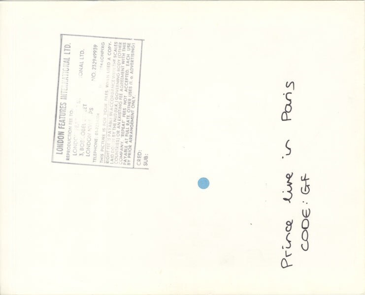Prince singing at Live in Paris Concert raised fist Original 8x10 Photo Stamped Near Mint Condition This is an Original vintage photograph from the year of the concert, photo shoot or event measuring approximately 8x10 inches (20x25 cm) unless otherwise stated. Many Original vintage photographs carry the agency or photographer stamp on the back. This is a rare collectors item being offered from one collector to another, no nights given or implied. Silver Screen are gradually releasing thousands of Original Photographs, Transparencies, Negatives, Lobby Cards, Posters, Magazines and other memorabilia from our historic archive.