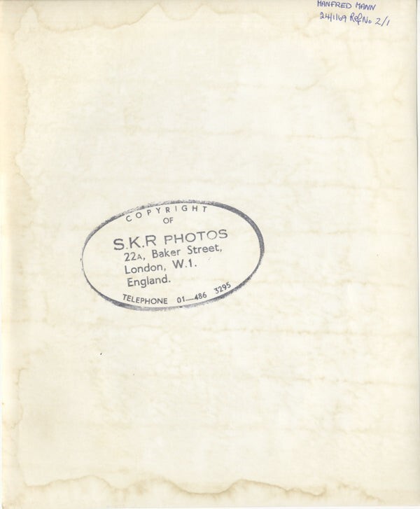 Manfred Mann 1960's English Rock Band lead singer Original 8x10 Photo Stamped VG/Near Mint Condition This is an Original vintage photograph from the year of the concert, photo shoot or event measuring approximately 8x10 inches (20x25 cm) unless otherwise stated. Many Original vintage photographs carry the agency or photographer stamp on the back. This is a rare collectors item being offered from one collector to another, no nights given or implied. Silver Screen are gradually releasing thousands of Original Photographs, Transparencies, Negatives, Lobby Cards, Posters, Magazines and other memorabilia from our historic archive.