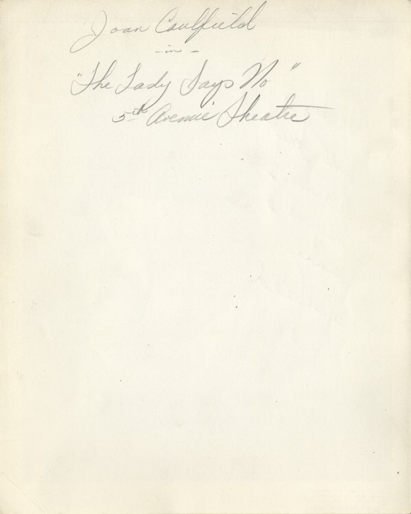 Joan Caulfield Autograph Signed Original 8x10 Photograph The Lady Says No 1951 - Inscribed in green pen "To Joy with my warmest regards Joan Caulfied'. Nice clear signature. VG/Near Mint Condition This is an authentic vintage autographed item hand signed by the celebrity , not a copy. Silver Screen are gradually releasing thousands of Original Photographs, Transparencies, Negatives, Lobby Cards, Posters, Magazines and other memorabilia from our historic archive.