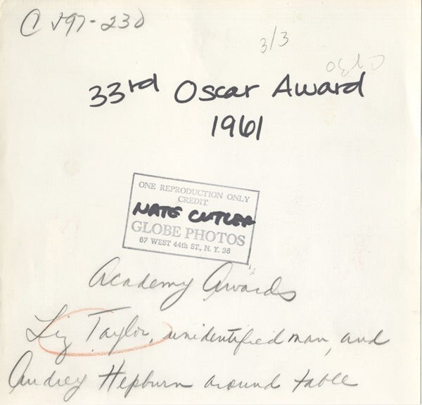 Elizabeth Taylor, Audrey Hepburn 1961 Academy Awards eating Oscar Statuette Cake Original 8x8 approx Photo Stamped, A truly wonderful and unique image capturing the two legendary leading ladies in candid monet at the 1961 Oscar's. A real collectors item being released from our historic archives in VG Condition This item is an ORIGINAL 8x10 photo from the historic archives of Silver Screen Mementos. This original photograph was made in the actual year the film, television show or event was produced. The movie studios produced publicity photographs for distribution to the press, photo agencies and publicity departments to advertise the film/tv show or event. Very often original photos have press release information on the reverse of the photo - movie credits, description of the scene, event and people involved. This is a historic piece of cinema art and is being offered from one collector to another, no rights given or implied. Silver Screen are gradually releasing thousands of Original Photographs, Transparencies, Negatives, Lobby Cards, Posters, Magazines and other memorabilia from our historic archive.