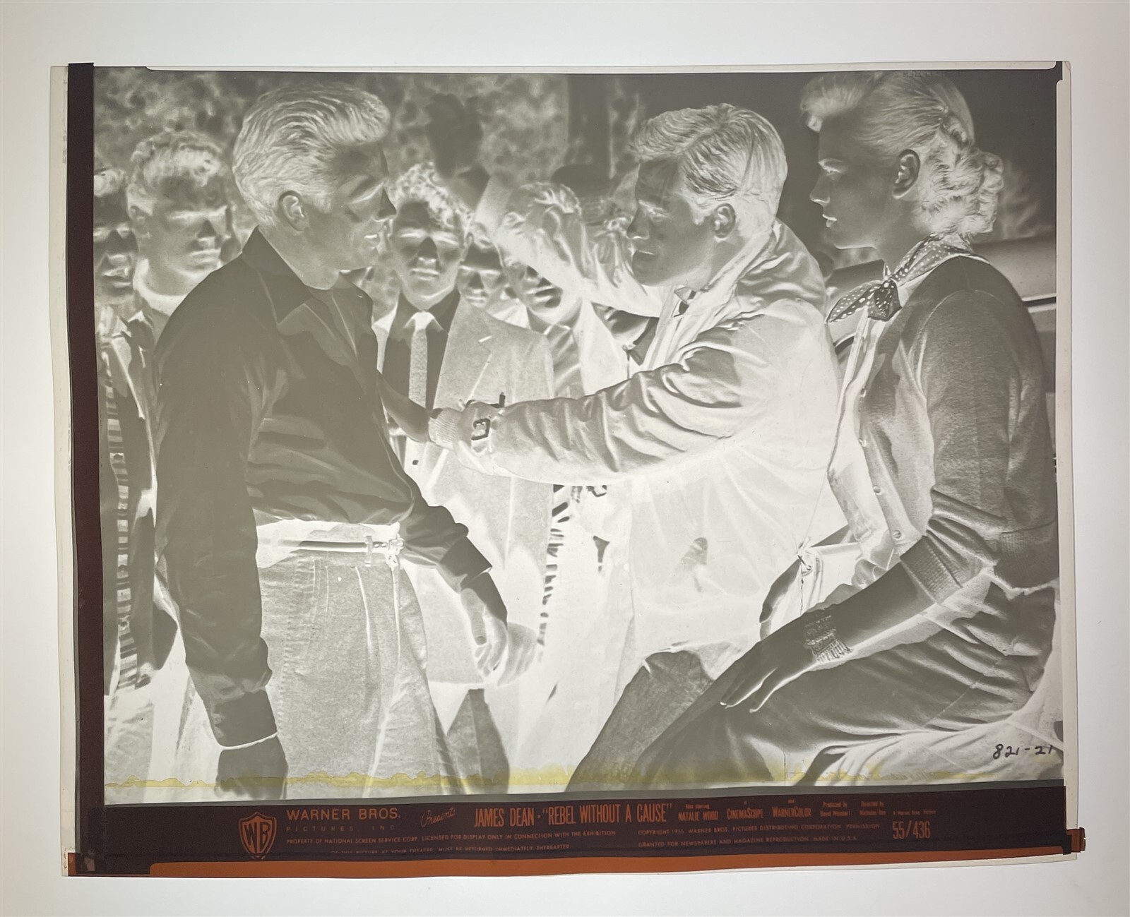 Rebel Without A Cause 1955 James Dean Natalie Wood Sal Mineo Vintage 8x10 Negative, great image of the three stars from the classic movie, with Amberlith tape covering credit caption at bottom border. A real collectors item being released from our historic archive. This is an original studio or Record Company 8x10 inches black and white photographic negative from our historic archive. This was produced by the studio or record company to print 8x10 promotional photographs and may have the red Amberlith masking tape and credit captions attached. This is a real collector's item and would make superb quality photographs or prints. This would also be a great addition to any collection or image archive. This Vintage studio black and white photographic negative is in Excellent condition. This collector's item is being sold from one collector to another, no rights are given or implied. Silver Screen Mementos are gradually releasing from their vast archives thousands of original photographs, transparencies, negatives, slides, lobby cards and other movie or television memorabilia.