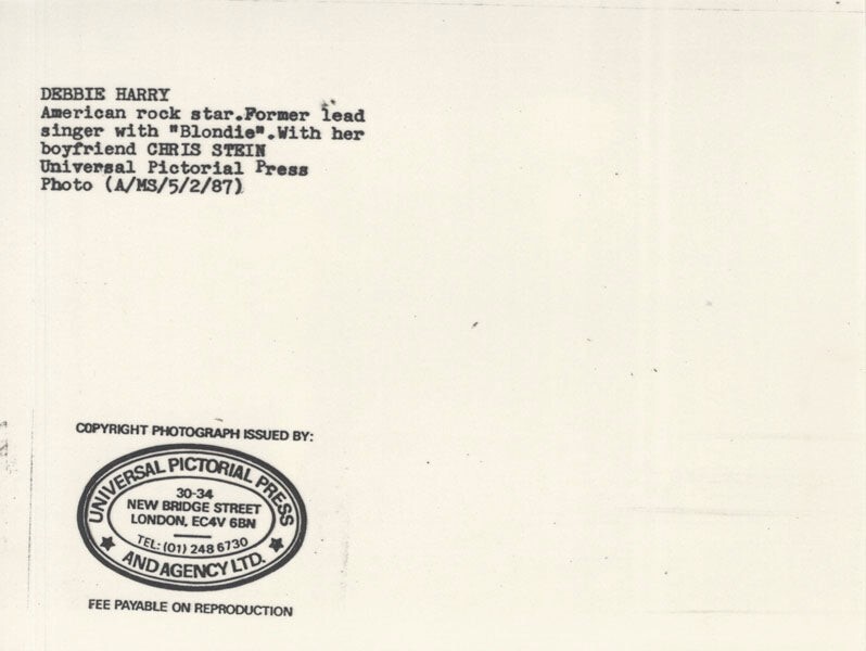 Debbie Deborah Harry Blondie Chris Stein Original 6x8 Photo Stamped with Snipe 1987 Near Mint Condition This item is an ORIGINAL 8x10 photo from the historic archives of Silver Screen Mementos. This original photograph was made in the actual year the film, television show or event was produced. The movie studios produced publicity photographs for distribution to the press, photo agencies and publicity departments to advertise the film/tv show or event. Very often original photos have press release information on the reverse of the photo - movie credits, description of the scene, event and people involved. This is a historic piece of cinema art and is being offered from one collector to another, no rights given or implied. Silver Screen are gradually releasing thousands of Original Photographs, Transparencies, Negatives, Lobby Cards, Posters, Magazines and other memorabilia from our historic archive.