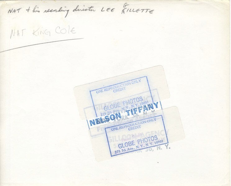 Nat King Cole in recording studio with Lee Gillette Original 8x10 Type 1 Photo Stamped Good/VG Condition (wear to edges) This is an Original vintage photograph from the year of the concert, photo shoot or event measuring approximately 8x10 inches (20x25 cm) unless otherwise stated. Many Original vintage photographs carry the agency or photographer stamp on the back. This is a rare collectors item being offered from one collector to another, no nights given or implied. Silver Screen are gradually releasing thousands of Original Photographs, Transparencies, Negatives, Lobby Cards, Posters, Magazines and other memorabilia from our historic archive.
