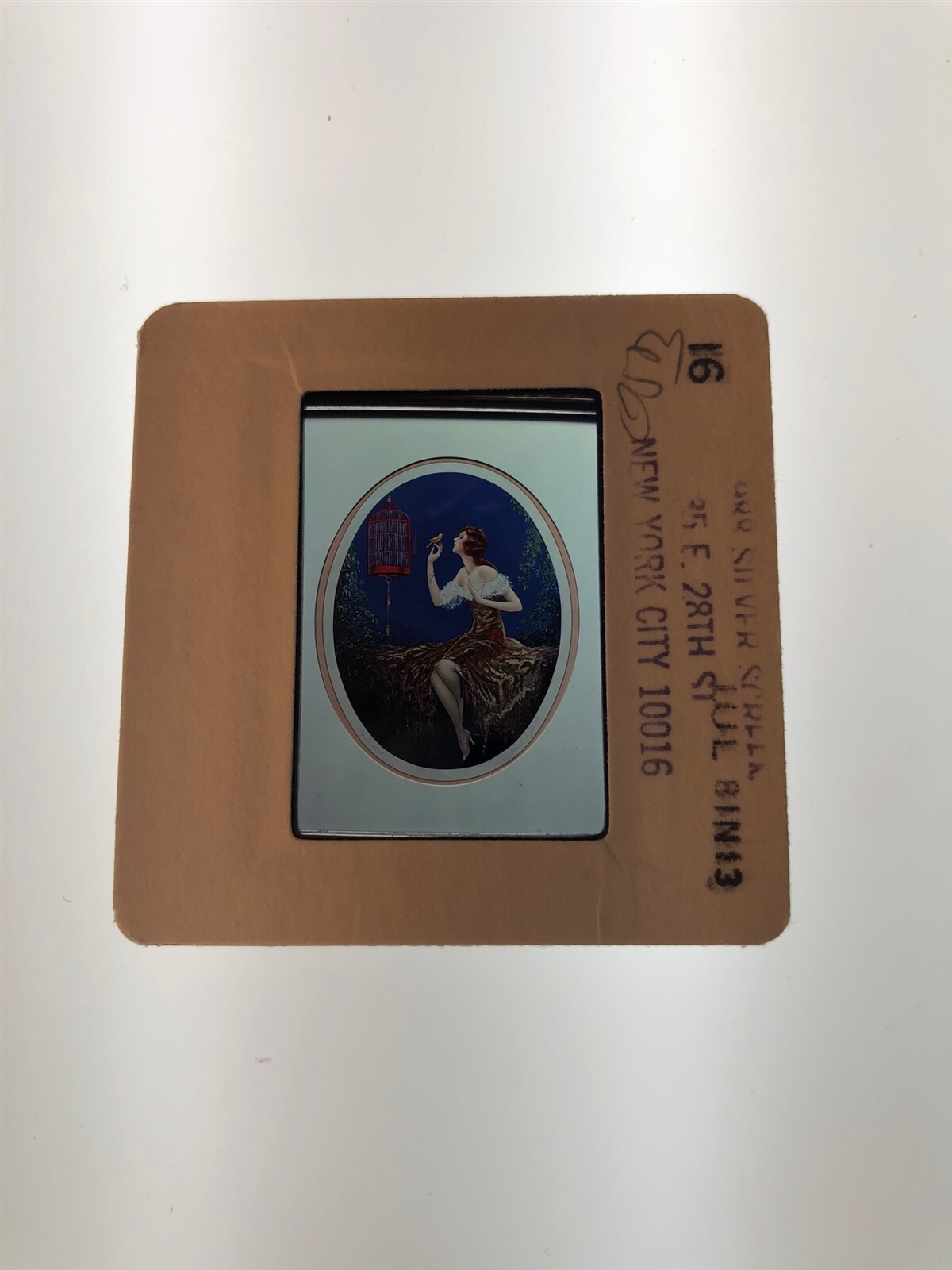 My Songbird by Marcel Le Boulte French Artist 1930's Vintage 35mm Transparency - This is a vintage 35mm stamped transparency slide taken of artwork by famed Franch artist Marcel Le Boulte titled 'My Songbird'. We are gradually releasing from our historic archives original photographs, negatives, transparency, slides, movie posters, magazines, books, press books, pins, autographs, trading cards, press badges and other rare collectors items.