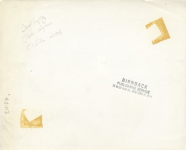 Holiday for Lovers 1959 Carol Lynley, Jane Wyman, Jill St John Clifton Webb Original 8x10 Photo Stamped VG Condition This item is an ORIGINAL 8x10 photo from the historic archives of Silver Screen Mementos. This original photograph was made in the actual year the film, television show or event was produced. The movie studios produced publicity photographs for distribution to the press, photo agencies and publicity departments to advertise the film/tv show or event. Very often original photos have press release information on the reverse of the photo - movie credits, description of the scene, event and people involved. This is a historic piece of cinema art and is being offered from one collector to another, no rights given or implied. Silver Screen are gradually releasing thousands of Original Photographs, Transparencies, Negatives, Lobby Cards, Posters, Magazines and other memorabilia from our historic archive.