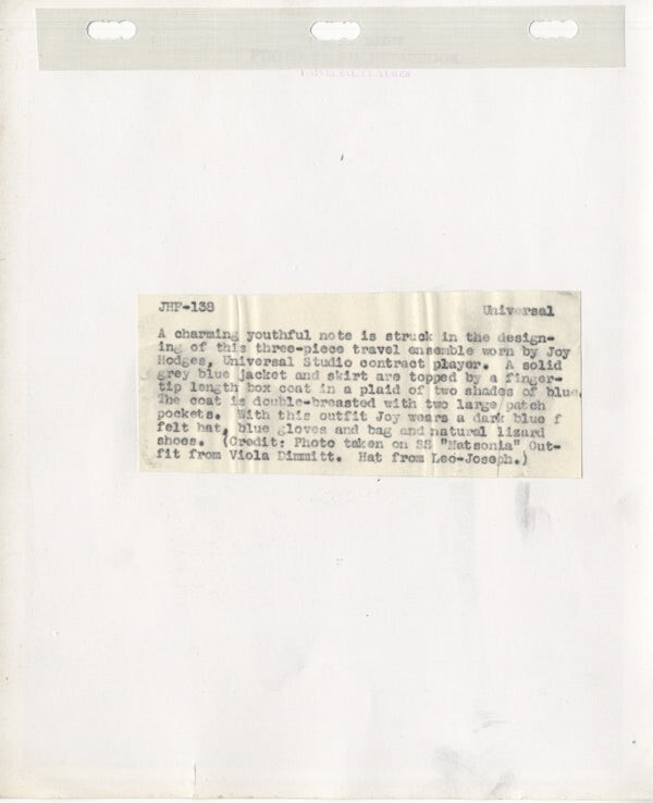 1930's Starlet Joy Hodges boarding the SS Matsonia Publicity Portrait Original 8x10 Silver Gelatin Keybook Photo with Snipe Good/VG Condition ( 3 ring binder holes with paper loss) This item is an ORIGINAL 8x10 photo from the historic archives of Silver Screen Mementos. This original photograph was made in the actual year the film, television show or event was produced. The movie studios produced publicity photographs for distribution to the press, photo agencies and publicity departments to advertise the film/tv show or event. Very often original photos have press release information on the reverse of the photo - movie credits, description of the scene, event and people involved. This is a historic piece of cinema art and is being offered from one collector to another, no rights given or implied. Silver Screen are gradually releasing thousands of Original Photographs, Transparencies, Negatives, Lobby Cards, Posters, Magazines and other memorabilia from our historic archive.