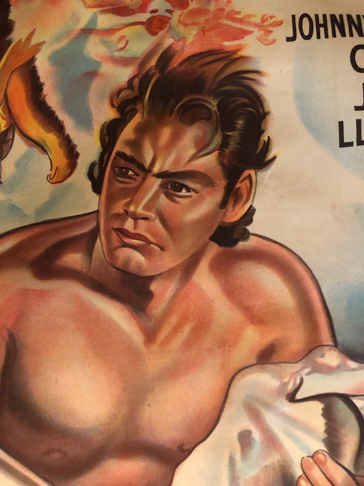 Tarzan's Desert Mystery 1943 Original Linen Backed 27x41 Spanish One Sheet Movie Poster , beautiful artwork from the 1943 movie starring Johnny Weissmuller as Tarzan, Nancy Kelly, Johnny Sheffield and Chita. This is a beautiful poster professionally linen backed and in Very Fine Condition. A real collectors item being released from our historic archives. This is the genuine Original Movie Poster released the year of the film, which were machine folded before distribution. This is a real collectors item being released from our historic archive. Silver Screen Mementos are gradually releasing from their vast archives thousands of original photographs, transparencies, negatives, slides, lobby cards , original movie posters, books, magazines and other movie or television memorabilia.