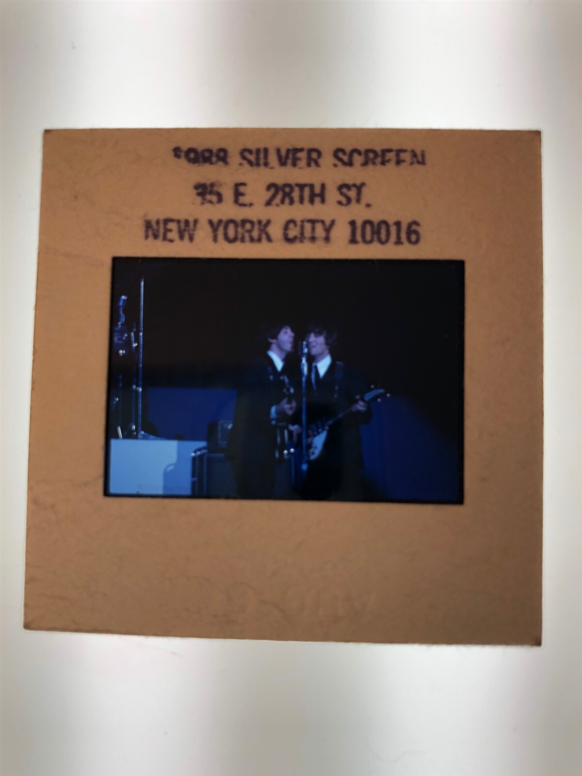 The Beatles Paul McCartney John Lennon 1964 Concert Original 35mm Transparency - An astonishing original 35mm color transparency taken of John Lennon and Paul McCartney whilst performing on stage in the USA 1964. This is a truly wonderful image capturing the music legends on their 1964 US tour. This is an historic and possibly un-published one of a kind image being released from our archives. This is an original studio or photographer's 35 mm color slide transparency from our historic archive. This is a real collector's item and would make superb quality photographs or prints. This would also be a great addition to any collection or image archive. This original color slide transparency is in Excellent condition. This collector's item is being sold from one collector to another, no rights are given or implied. Silver Screen Mementos are gradually releasing from their vast archives thousands of original photographs, transparencies, negatives, slides, lobby cards and other movie or television memorabilia.