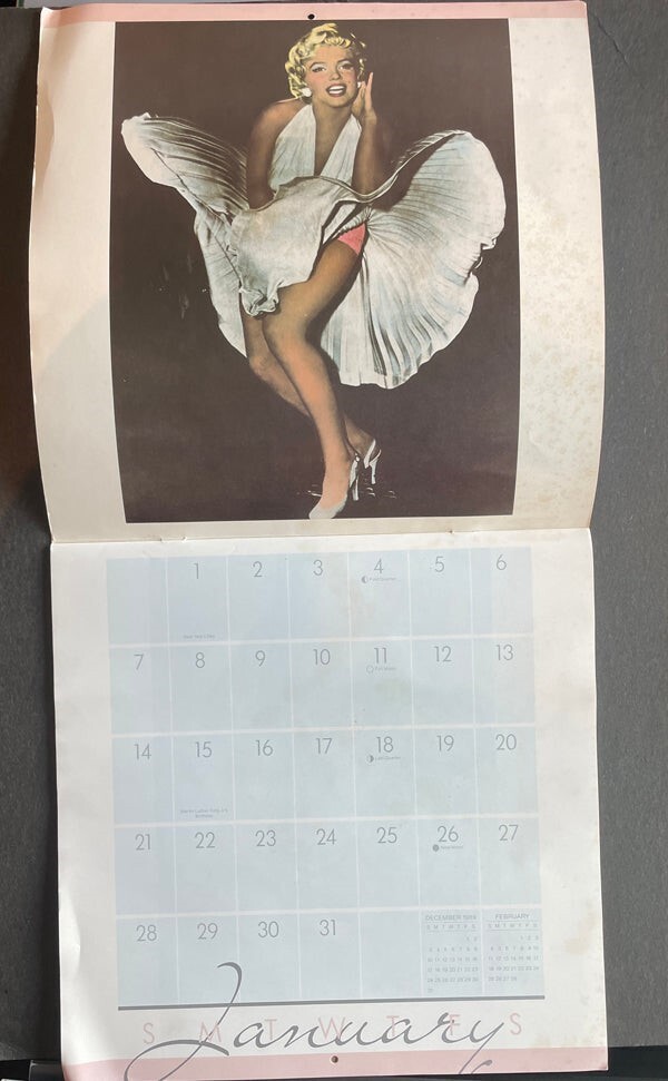 Marilyn Monroe 1990 Vintage Original Calendar 12 Art Photos large Format Rare We are gradually releasing from our historic archives original photographs, negatives, transparency, slides, movie posters, magazines, books, press books, pins, autographs, trading cards, press badges and other rare collectors items.