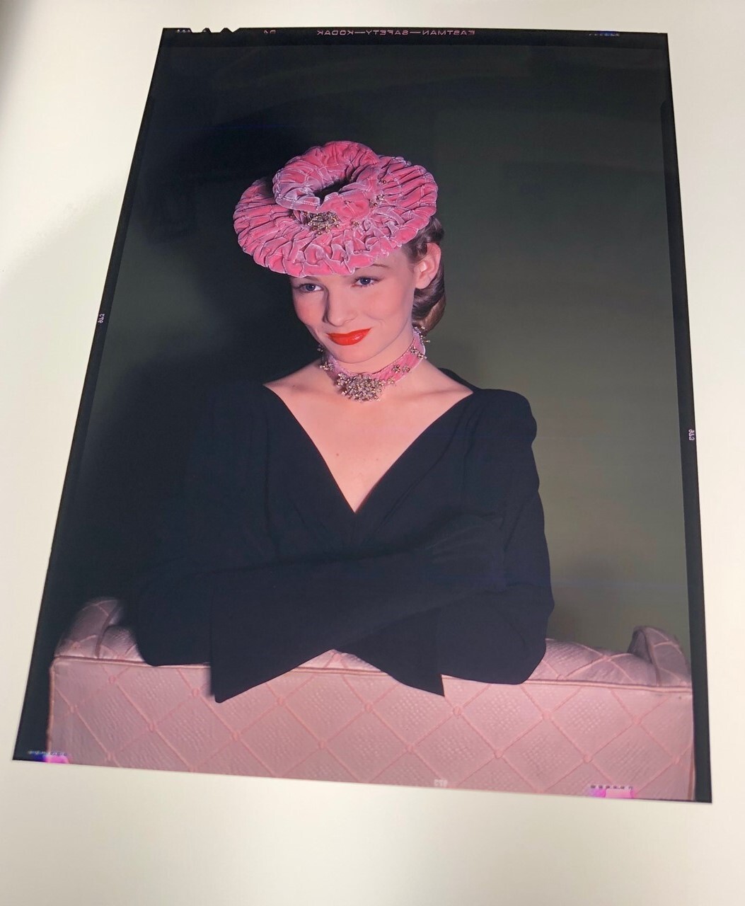 Veronica Lake Breathtaking Glamour Pink Hat 1940's Original 5x7 Transparency, An absolutely stunning Original 5x7 inch vivid color Transparency of the iconic star posing 1940's in elegant pink hat. A real treasure being released from our historic archives. This is an original studio or photographer's 5 x 7 inches color slide transparency from our historic archive. This is a real collector's item and would make superb quality photographs or prints. This would also be a great addition to any collection or image archive. This original color slide transparency is in Excellent condition. This collector's item is being sold from one collector to another, no rights are given or implied. Silver Screen Mementos are gradually releasing from their vast archives thousands of original photographs, transparencies, negatives, slides, lobby cards and other movie or television memorabilia.