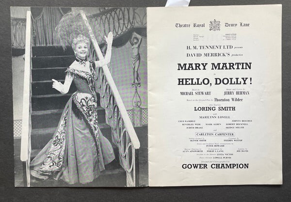 Hello Dolly UK Thatre Royal Original Vintage Show Brochure Programme Mary Martin and Gower Champion 20 pages of photos, articles and features from the London musical production measuring approx 9x12 inches in VG Condition We are gradually releasing from our historic archives original photographs, negatives, transparency, slides, movie posters, magazines, books, press books, pins, autographs, trading cards, press badges and other rare collectors items.