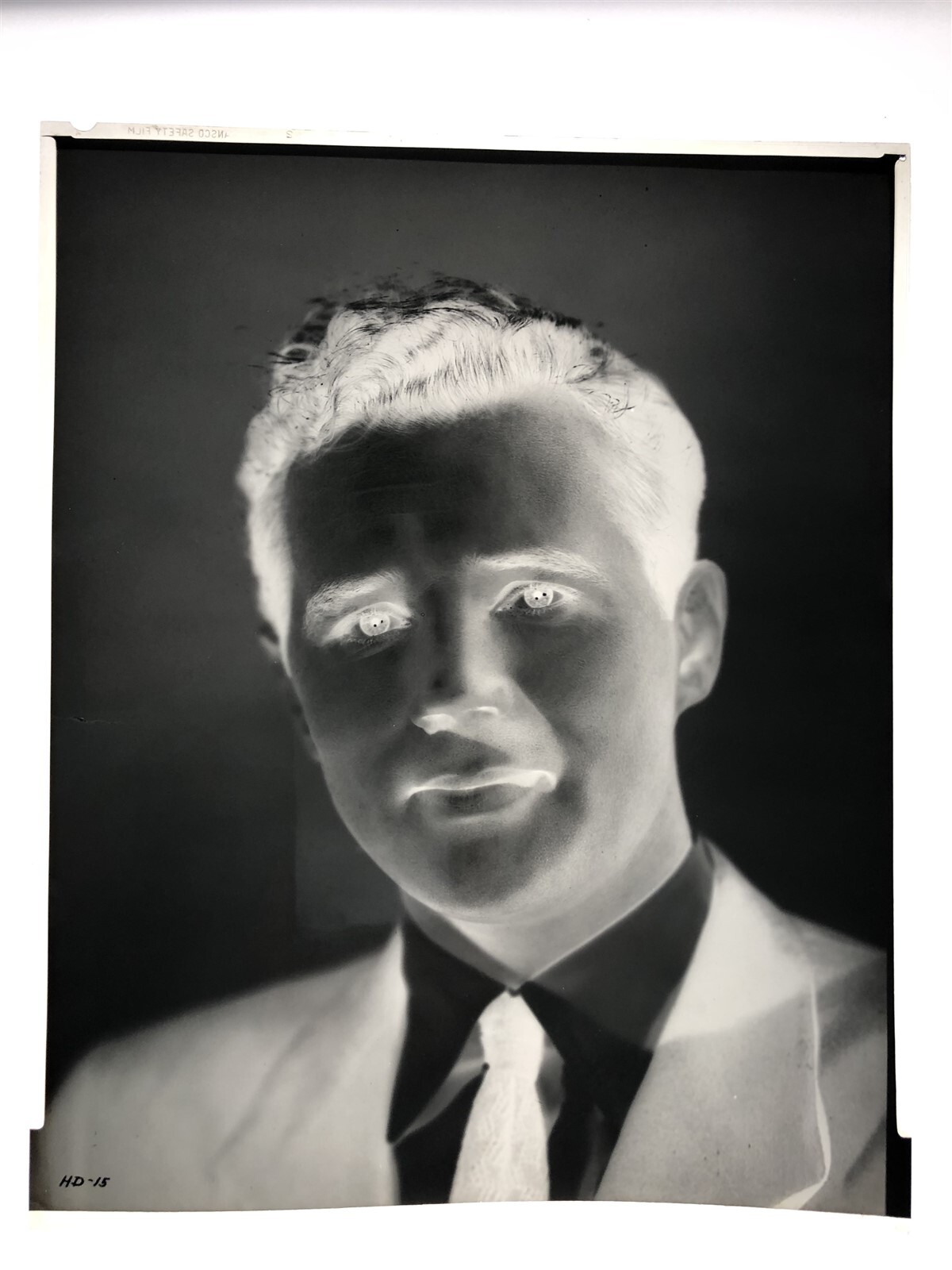 Howard Duff 1940's Studio Publicity Photo Shoot Vintage 8x10 Negative This is a vintage studio or photographer's 8x10 inch black and white photographic negative from that was from the famed Marvin Paige Motion Picture and Television Research Archive. Marvin Paige was a renowned Hollywood casting agent who had worked on such productions as 'Breakfast at Tiffany's and 'Planet of the Apes' and a film historian who had amassed a huge archive of movie and television images and memorabilia . This vintage negative was created from the original camera negative by the studio or photographer in order to make prints and use for publications. This is a real collector's item and would make superb quality photographs or prints. This would also be a great addition to any collection or image archive. This black and white photographic negative is in Excellent condition. This collector's item is being sold from one collector to another, no rights are given or implied. Silver Screen Mementos are gradually releasing from their vast archives thousands of original photographs, transparencies, negatives, slides, lobby cards and other movie or television memorabilia.