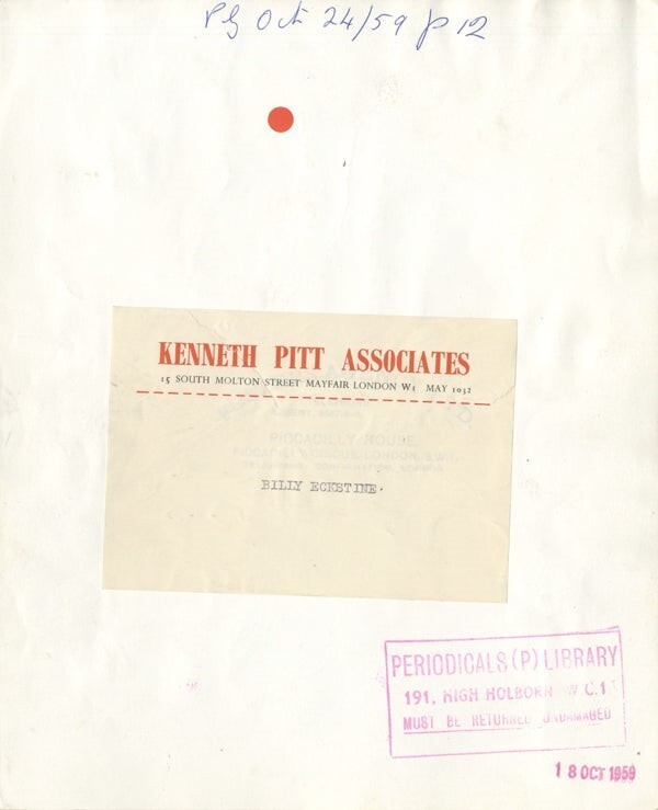 Billy Eckstine Jazz Bebop Pop Singer Rare 1950's Publicity Original 8x10 Photo Stamped Good Condition (wear to edges, surface marks) This item is an ORIGINAL 8x10 photo from the historic archives of Silver Screen Mementos. This original photograph was made in the actual year the film, television show or event was produced. The movie studios produced publicity photographs for distribution to the press, photo agencies and publicity departments to advertise the film/tv show or event. Very often original photos have press release information on the reverse of the photo - movie credits, description of the scene, event and people involved. This is a historic piece of cinema art and is being offered from one collector to another, no rights given or implied. Silver Screen are gradually releasing thousands of Original Photographs, Transparencies, Negatives, Lobby Cards, Posters, Magazines and other memorabilia from our historic archive.