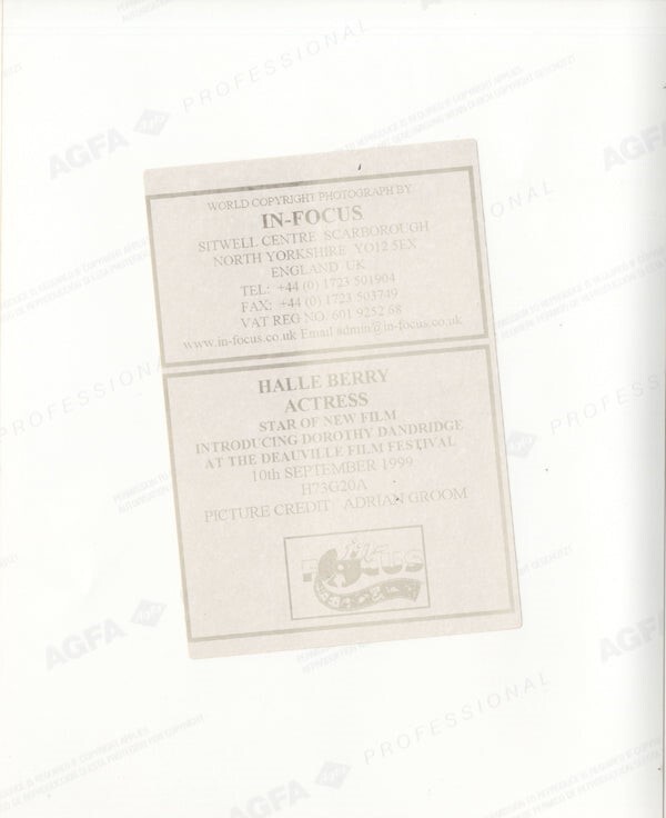 Halle Berry 1999 Deauville Film Festival Glamour Original 8x10 Color Photo Stamped Near Mint Condition This item is an ORIGINAL 8x10 photo from the historic archives of Silver Screen Mementos. This original photograph was made in the actual year the film, television show or event was produced. The movie studios produced publicity photographs for distribution to the press, photo agencies and publicity departments to advertise the film/tv show or event. Very often original photos have press release information on the reverse of the photo - movie credits, description of the scene, event and people involved. This is a historic piece of cinema art and is being offered from one collector to another, no rights given or implied. Silver Screen are gradually releasing thousands of Original Photographs, Transparencies, Negatives, Lobby Cards, Posters, Magazines and other memorabilia from our historic archive.