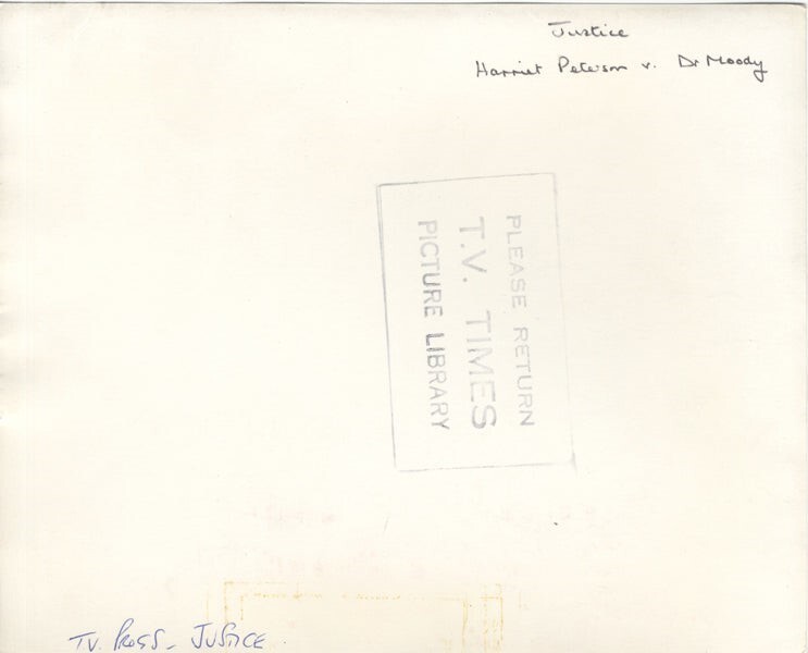 Justice Margaret Lockwood, Norman Shelley, Harriet Peterson v Dr. Moody 1973 TV Series Episode Original 8x10 Double Weight Photo Stamped VG/Near Mint Condition This item is an ORIGINAL 8x10 photo from the historic archives of Silver Screen Mementos. This original photograph was made in the actual year the film, television show or event was produced. The movie studios produced publicity photographs for distribution to the press, photo agencies and publicity departments to advertise the film/tv show or event. Very often original photos have press release information on the reverse of the photo - movie credits, description of the scene, event and people involved. This is a historic piece of cinema art and is being offered from one collector to another, no rights given or implied. Silver Screen are gradually releasing thousands of Original Photographs, Transparencies, Negatives, Lobby Cards, Posters, Magazines and other memorabilia from our historic archive.